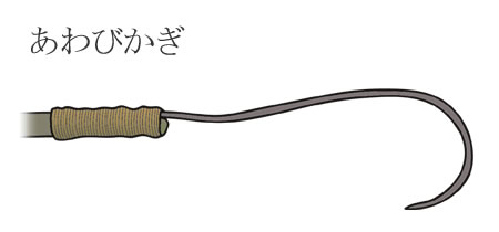 あわびかぎは貝のすきまにこじ入れて、てこの動きでとるために使います。