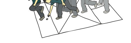 最後までいったらくるりと回り、かけらを拾って戻ります。番号順にかけらを投げて飛んでいきます。かけらのある場所は入ってはいけません。うまく入れられなかったときは失敗、次の人へ。