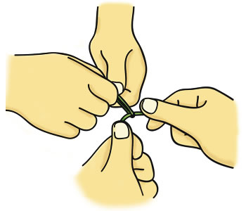 すもとりぐさ(おおばこ)の茎を二本からめて、引っ張りあいます。ちぎれたほうが負け。