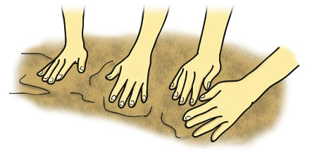 広場などで、砂山に棒をたて、棒を倒さないようにする「砂とり」をして遊びました。さらさらした砂があるときは、砂山をつくり、じょうろなどで真ん中に水を入れます。そうすると、お茶わんのような形に砂が固まり、ぽこっと取り外すことができるようになります。砂のお茶わんは、ままごとをする時に使いました。
