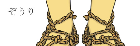 遊びに行く時には悪くなったぞうりをはきました。遊んでいる途中でつぶれたら、その場で捨てて、はだしで帰ることもありました。冬仕事のとき、それぞれの足の大きさに合わせ、1人に50足くらい作ってたかの竹の棚に積んでおきました。鼻緒に布を巻いてもらったよそゆきのぞうりは5、6足作ります。
