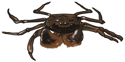 おすのはさみにだけ毛が生えている養老の海や川にたくさんいるかにです。
